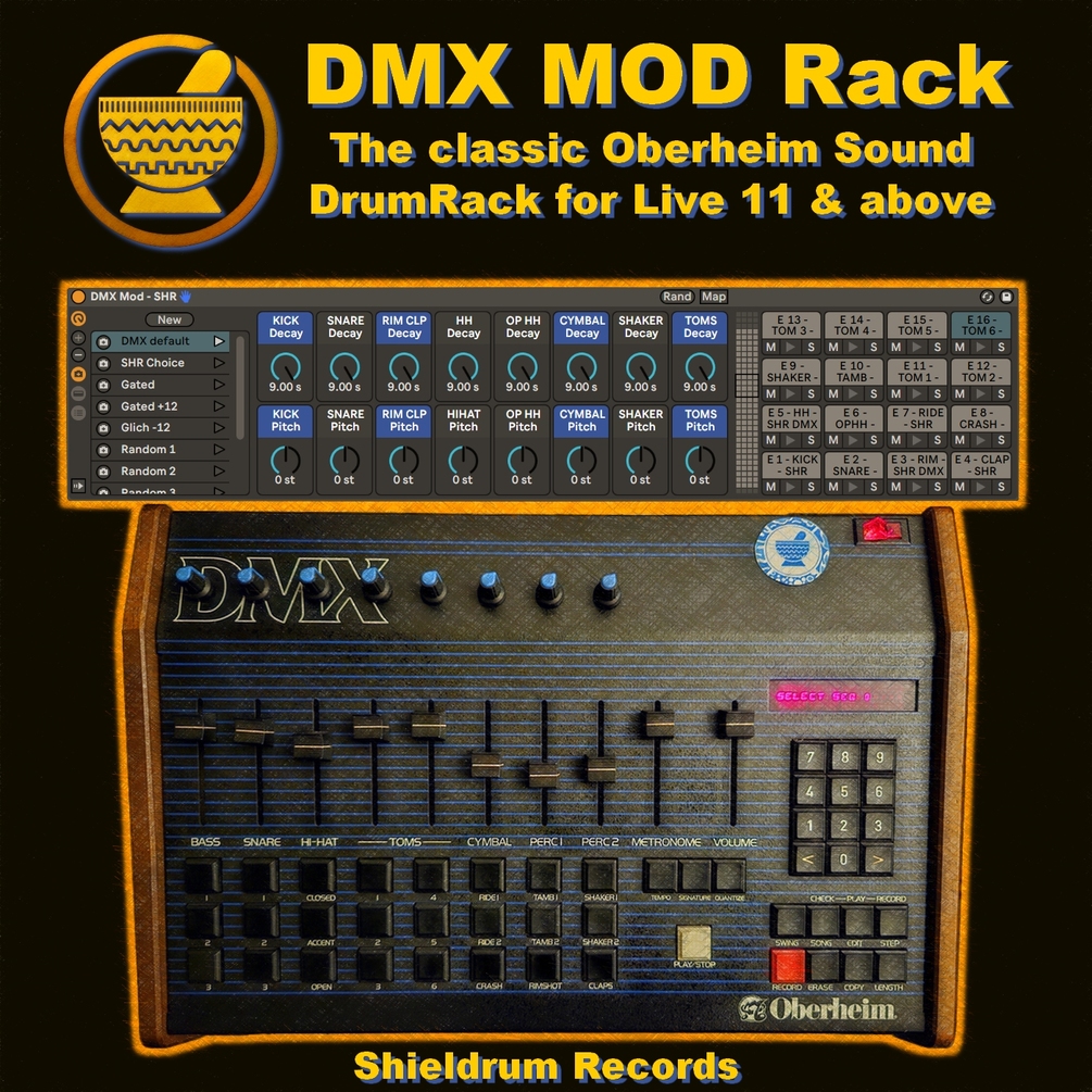 DMX MOD DrumRack is a rack built from the studio's modded Oberheim DMX drum Machine , Each Sound sampled on several pitch setting. all this is organised in a drum Rack with quick access to Pitch & Decay , letting the possibility via the Random Switch to generate any pitch+decay combination on all the kit. Mixer organised by sound categories & each track contains a "AttackDrive" Rack from SHR & an EQ to make your drumKit fits in any composition. Some presets available, and posibility of saving presets in the "variation" section of the drum rack.
